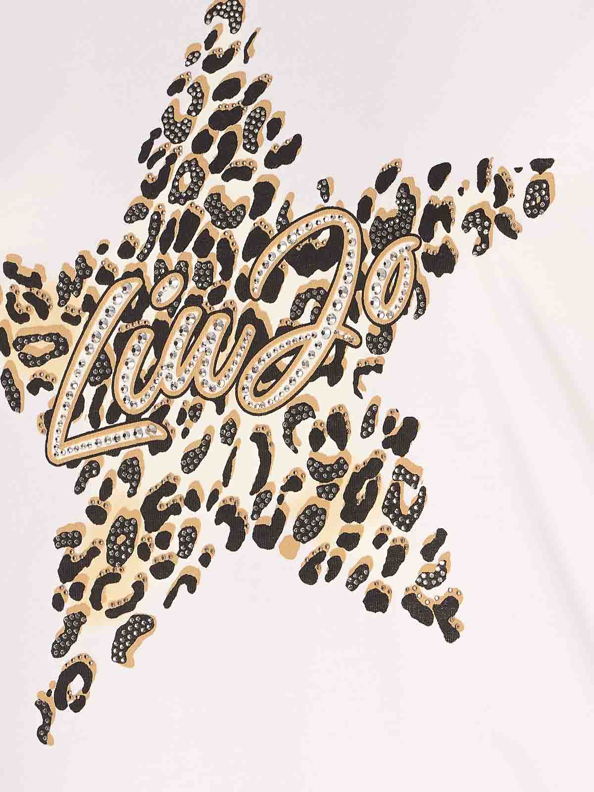 Liu jo white t-shirt, crewneck, print on the front, strass logo on the front