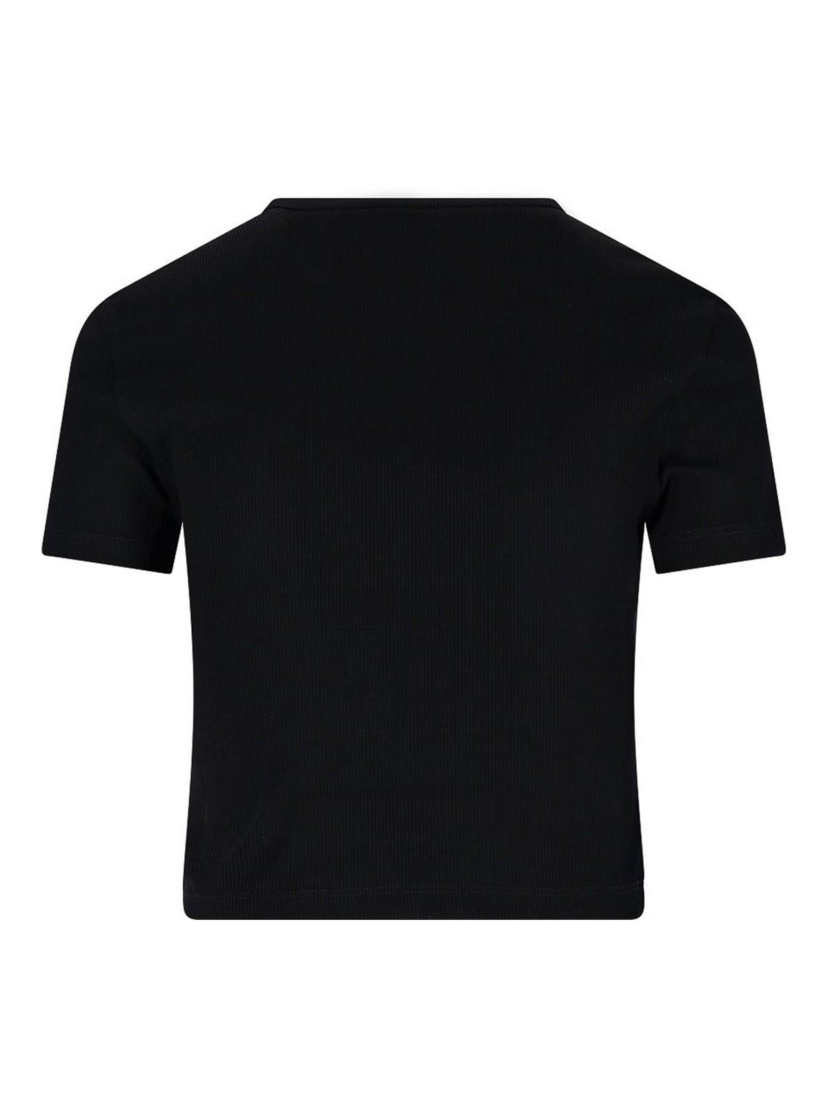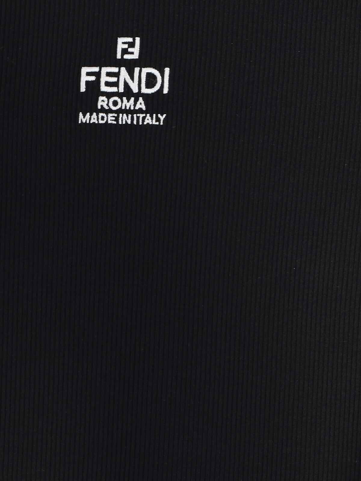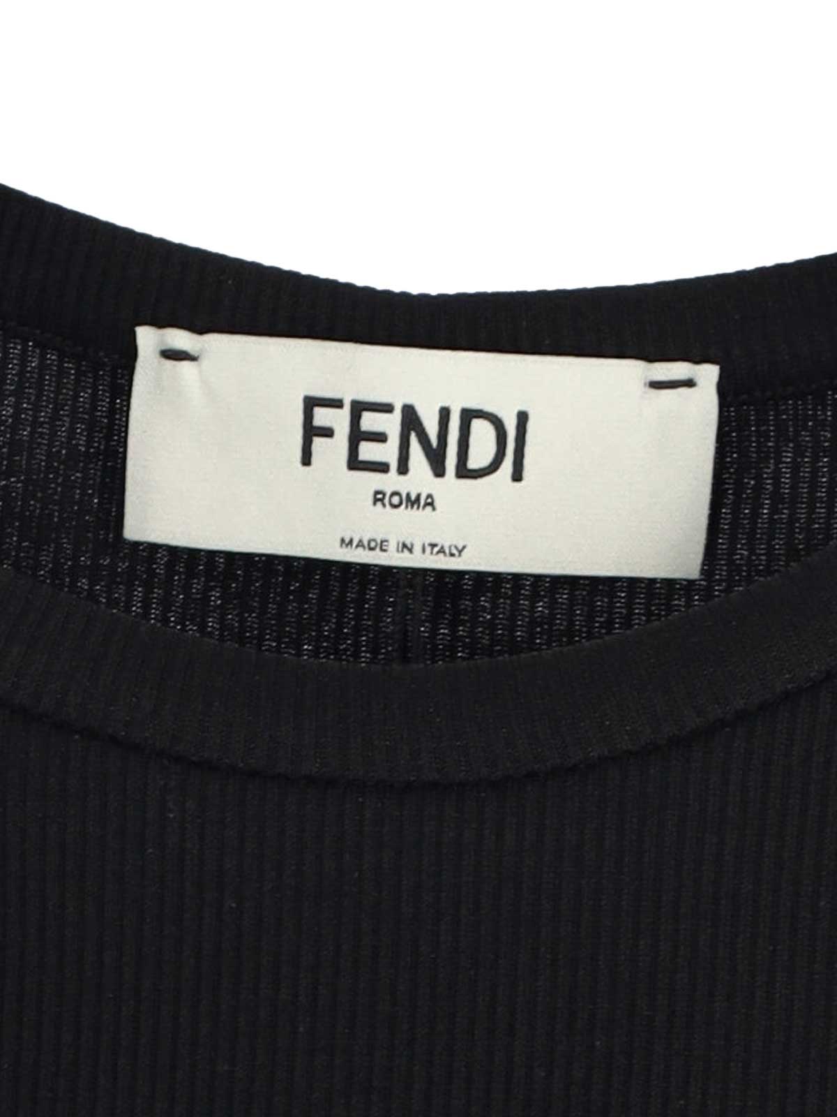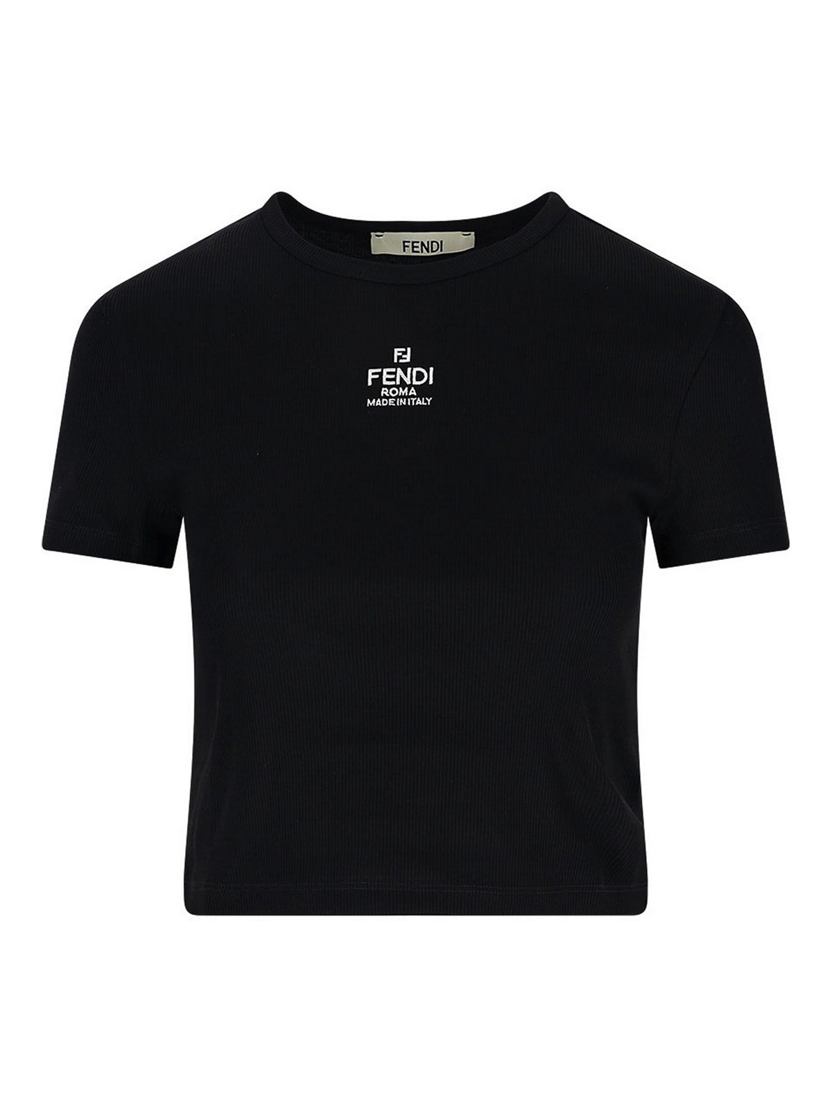 Fendi logo T-shirt in black cotton, ribbed workmanship, crew neck, short sleeves, contrasting embroidered logo detail on the front, straight hem.