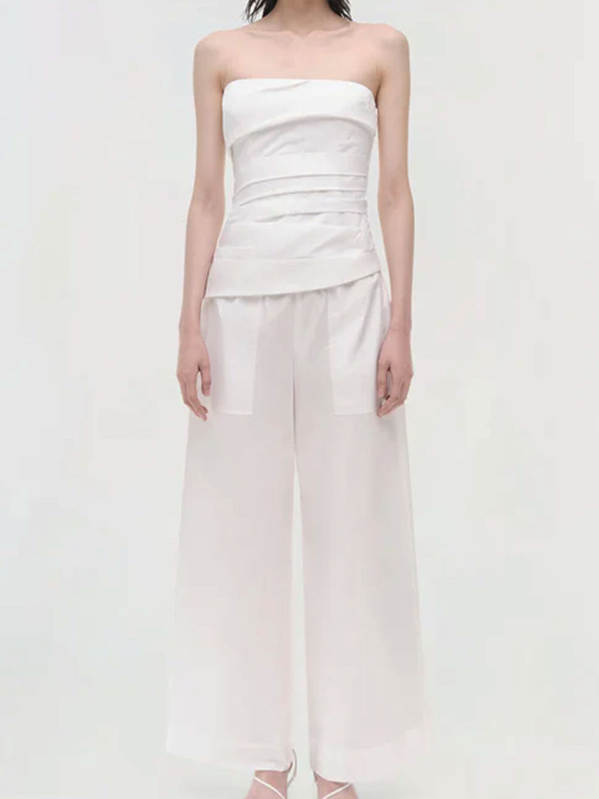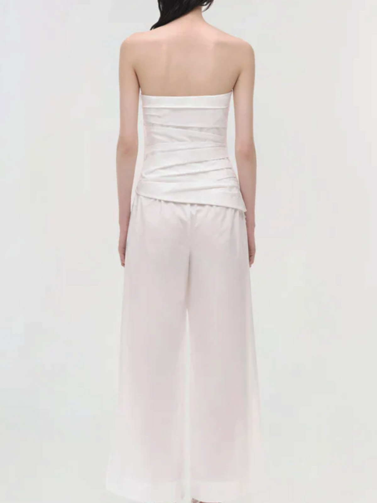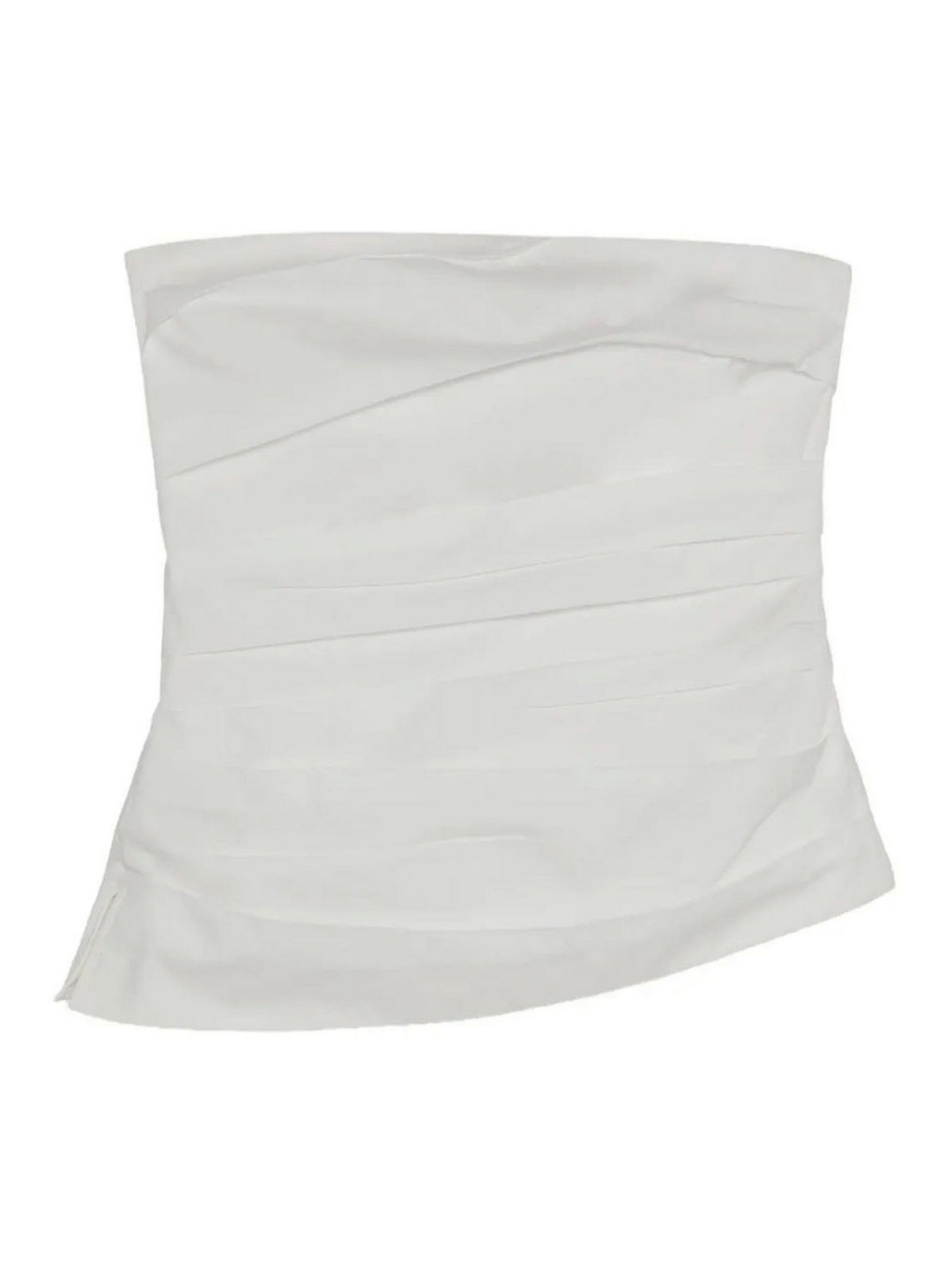 White top made of fresh cotton poplin, designed with soft angled pleats that create a structured and sculpted fit on the bust. internal boning provides discreet support. adjustable and removable thin shoulder straps.