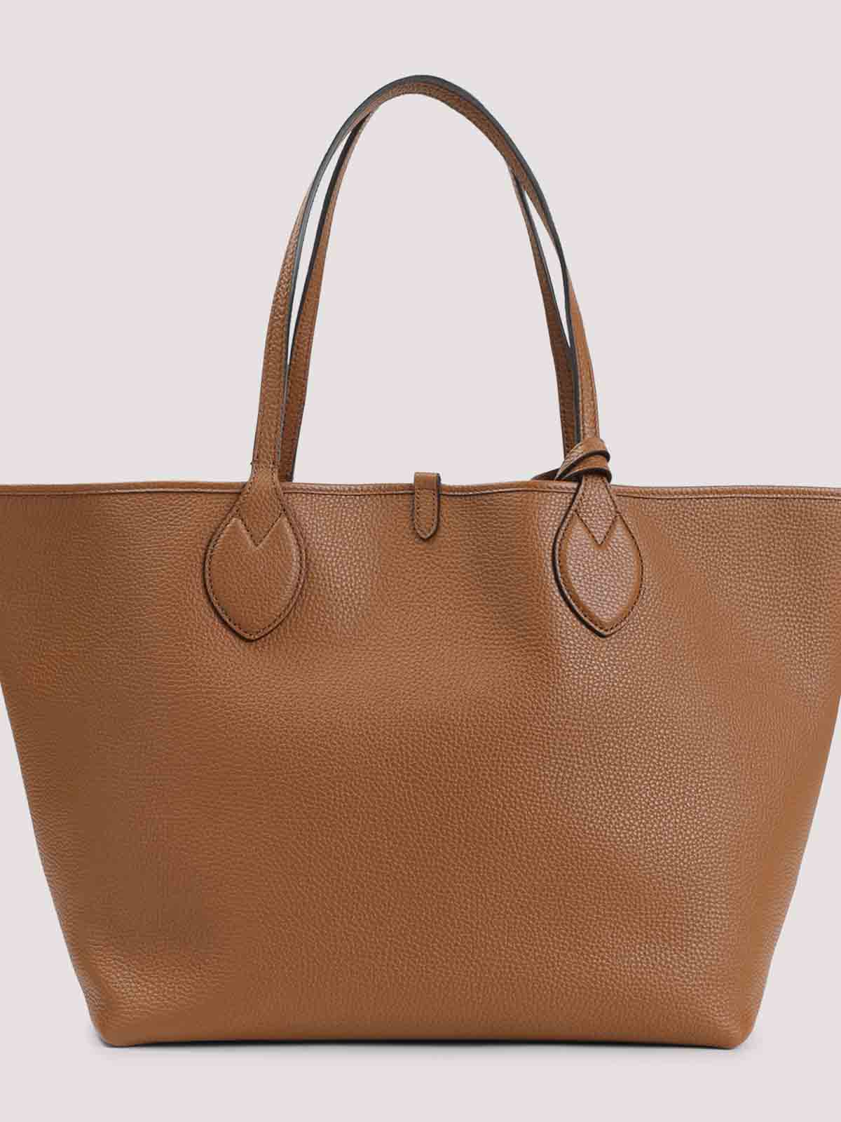 Gucci totissima large brown grained leather tote bag. reversible bag, one side crafted from brown grained leather and the other from beige and ebony gg canvas, featuring two top handles, a hook fastening, and a detachable inner zip pocket.