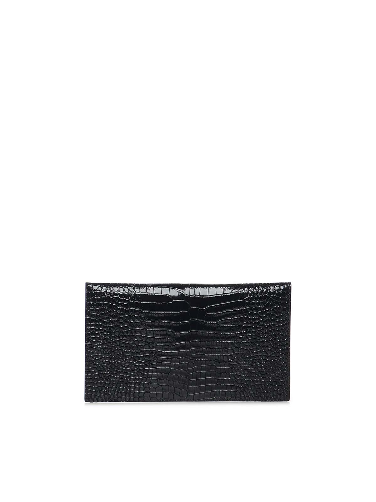 made of shiny crocodile-embossed leather, magnetic closure, dimensions: 27 x 16 x 2 cm, made in italy, color: black