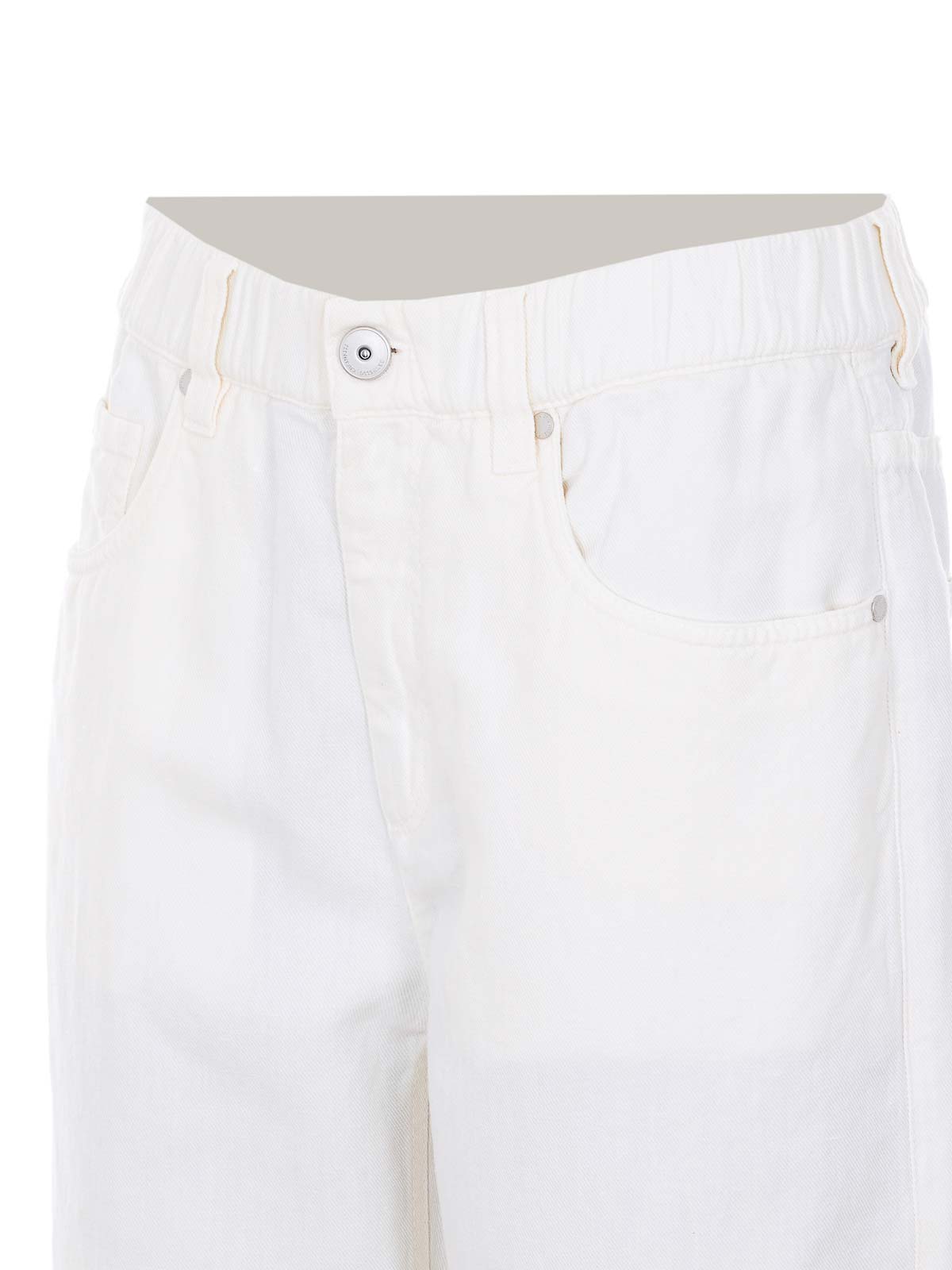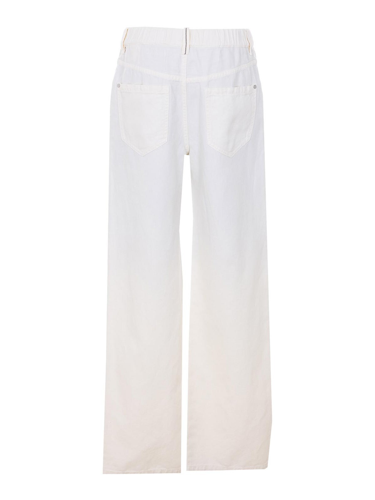 Brunello cucinelli white pants, elasticized on waist, button and zip closure, monile logo on the back, pockets, wide leg