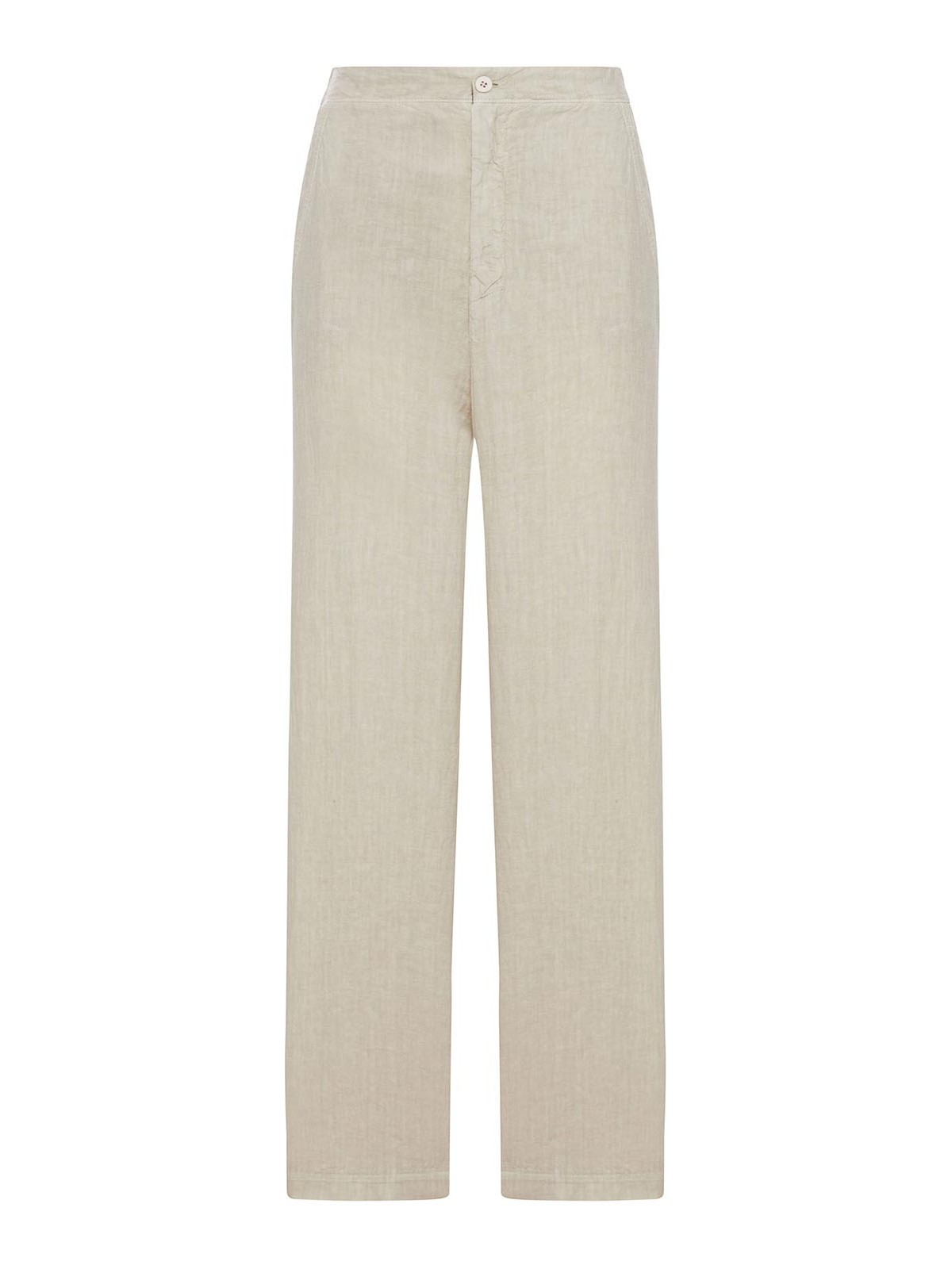 straight fit, wide leg and flowing fit, front button closure with covered fly, inset side pockets, back welt pockets, regular waist, belt loops, straight hem, garment dyed, relaxed fit, color: sand