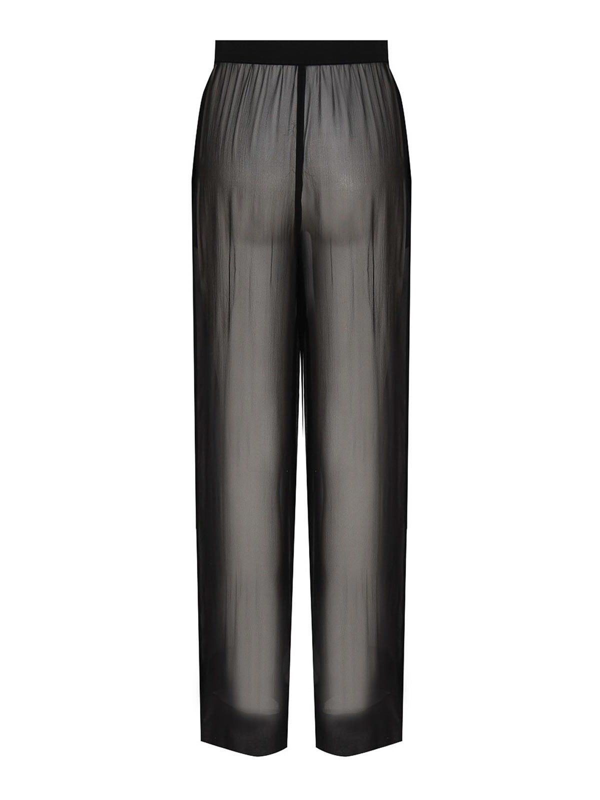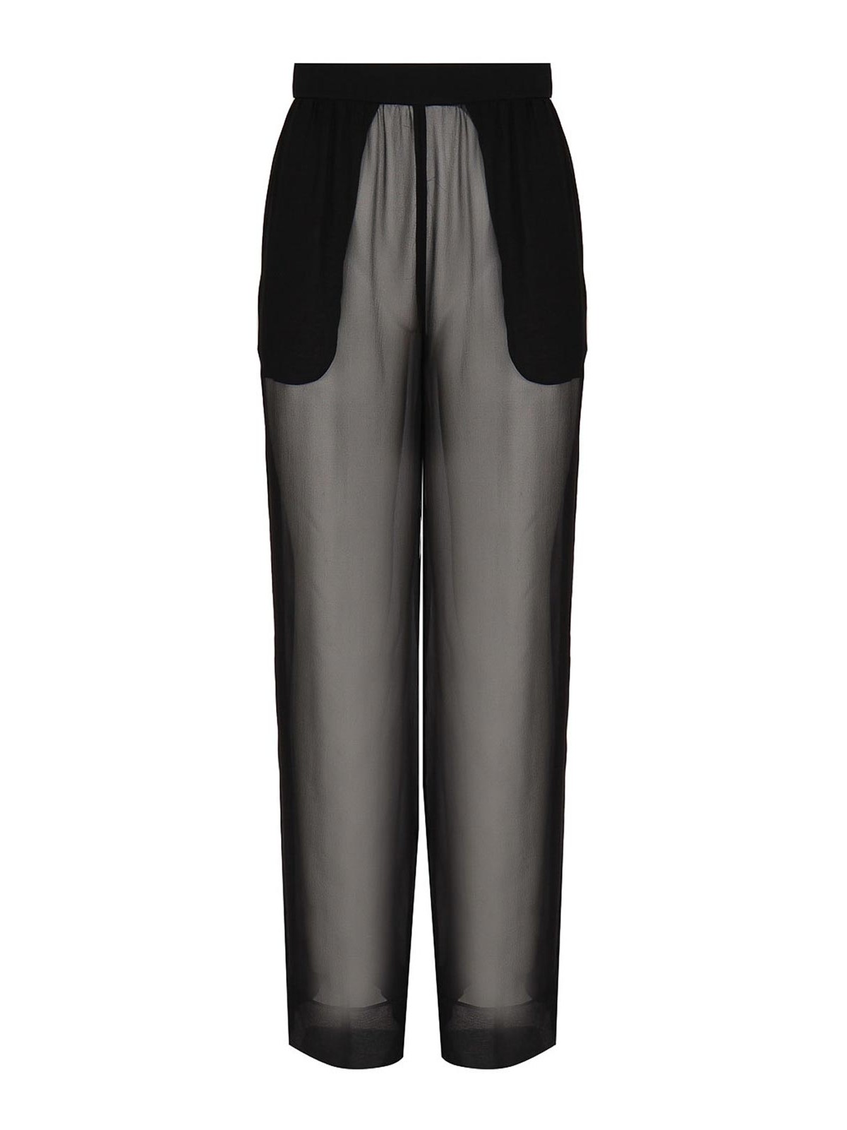 Semi, transparent high, waisted trousers wide hem zip on the side colour black