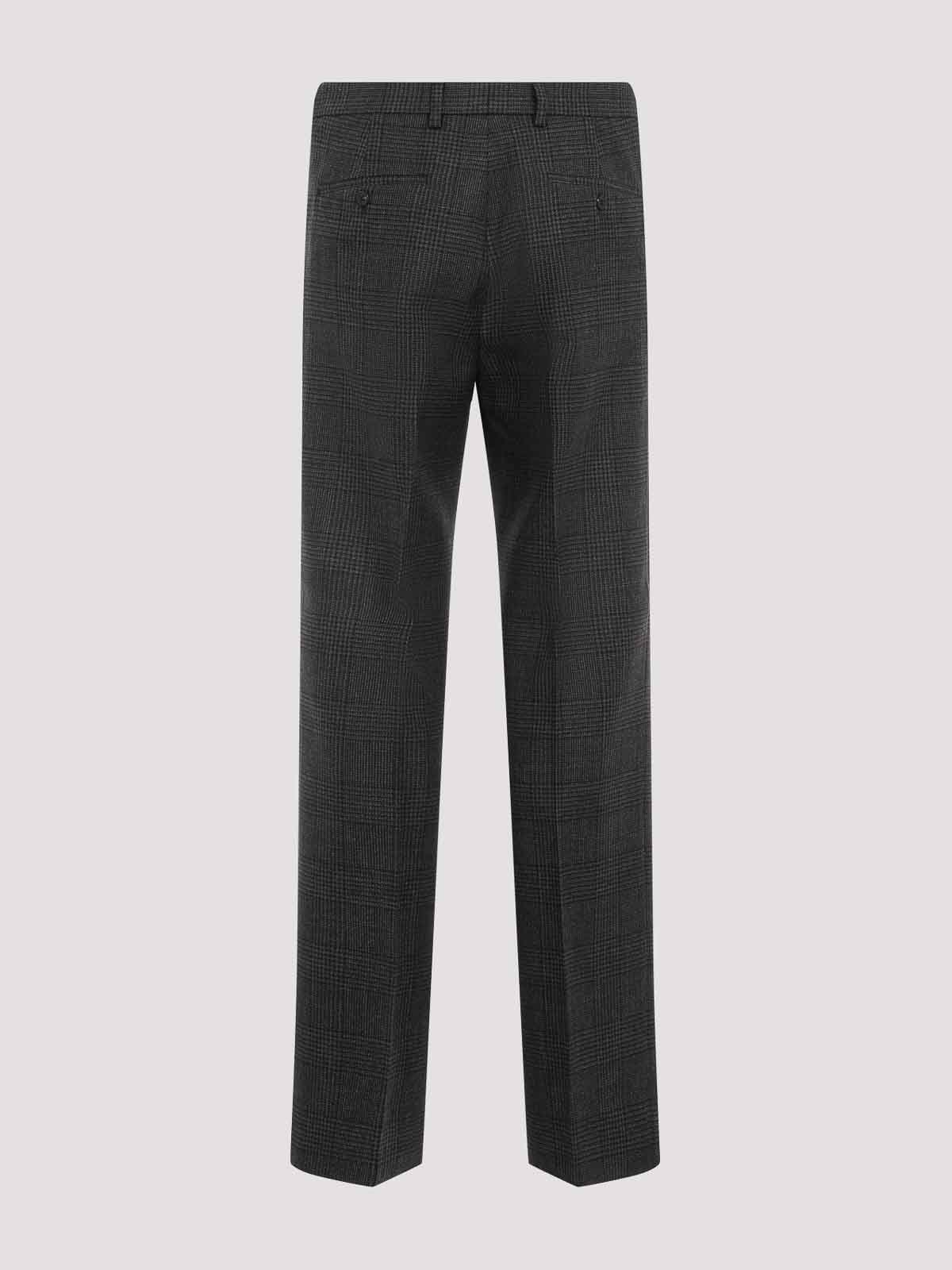 Prada grey wool pants. greey checkered houndstooth wool, belt loops, front concealed closure, slant pockets, welt pockets with buttons on the back, central loose creases, regular fit, straight leg.