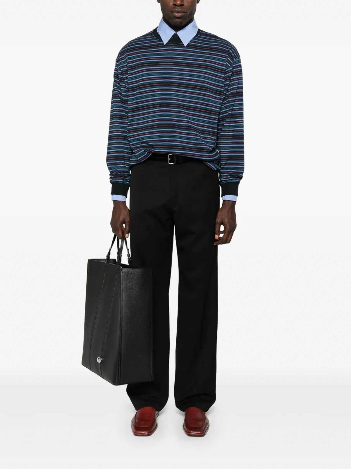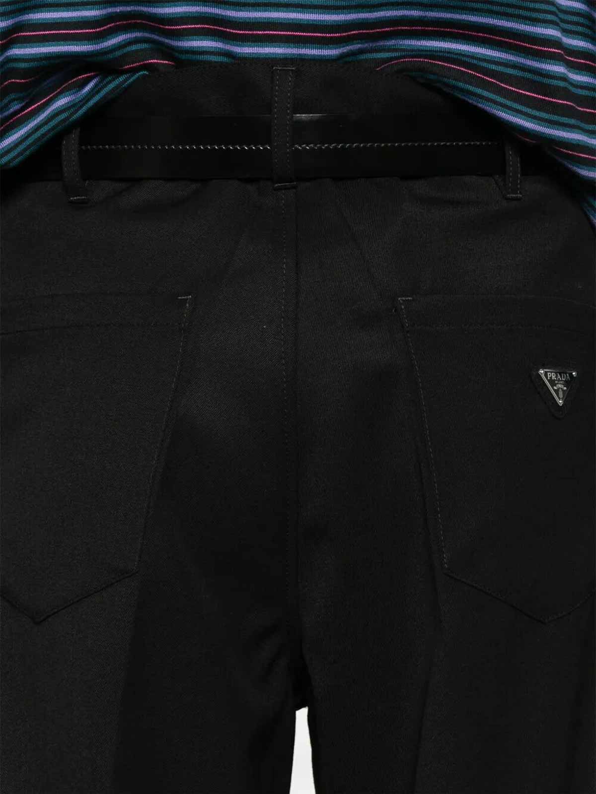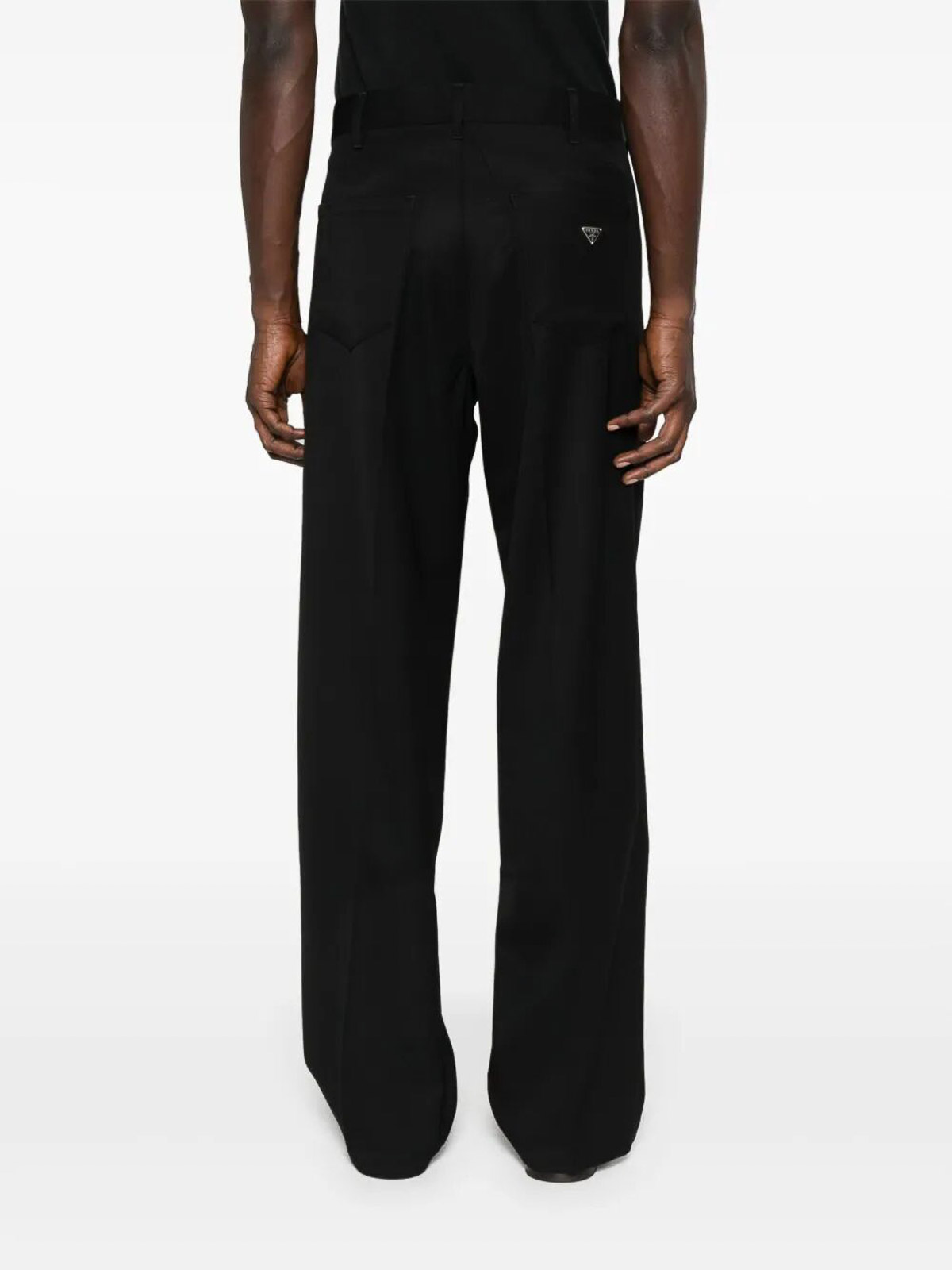 Classic fit, zip and button closure, front American pockets, patch pockets on the back, 22 cm bottom, enamelled metal triangle logo on the back, the folds are obtained thanks to a pressing process of the garment