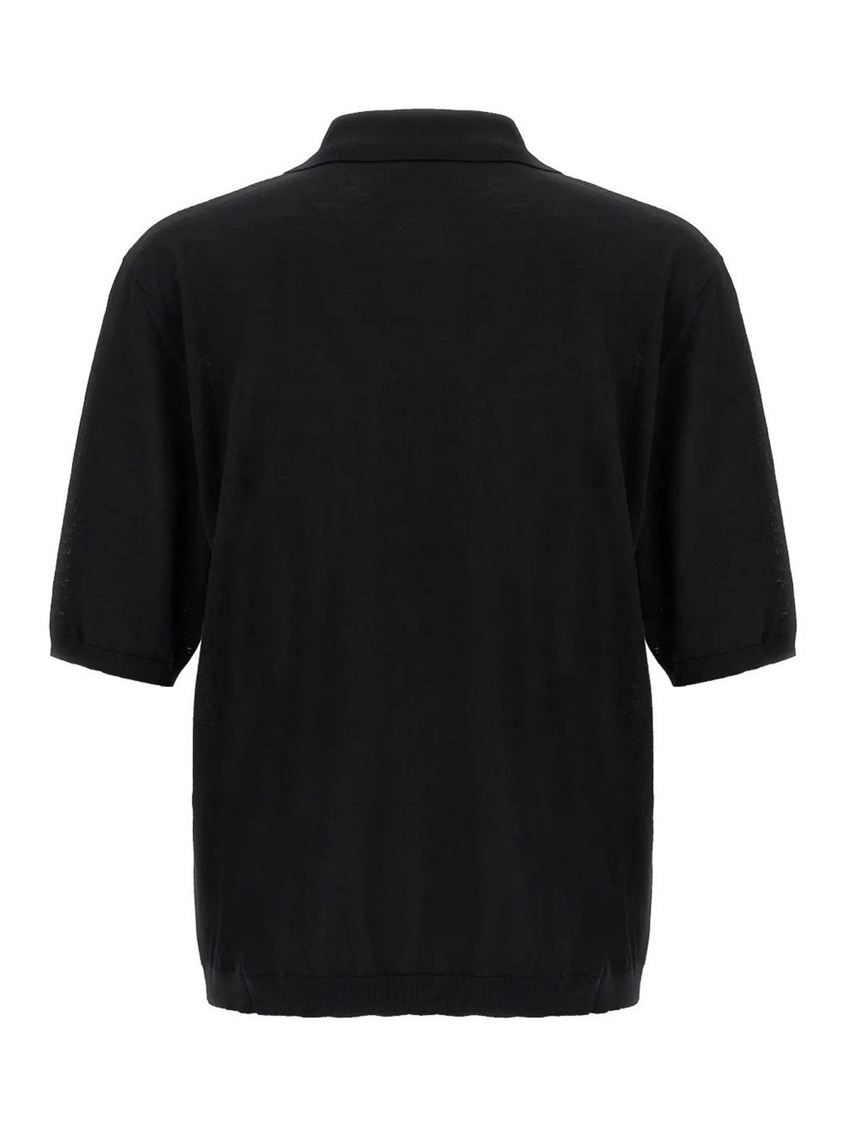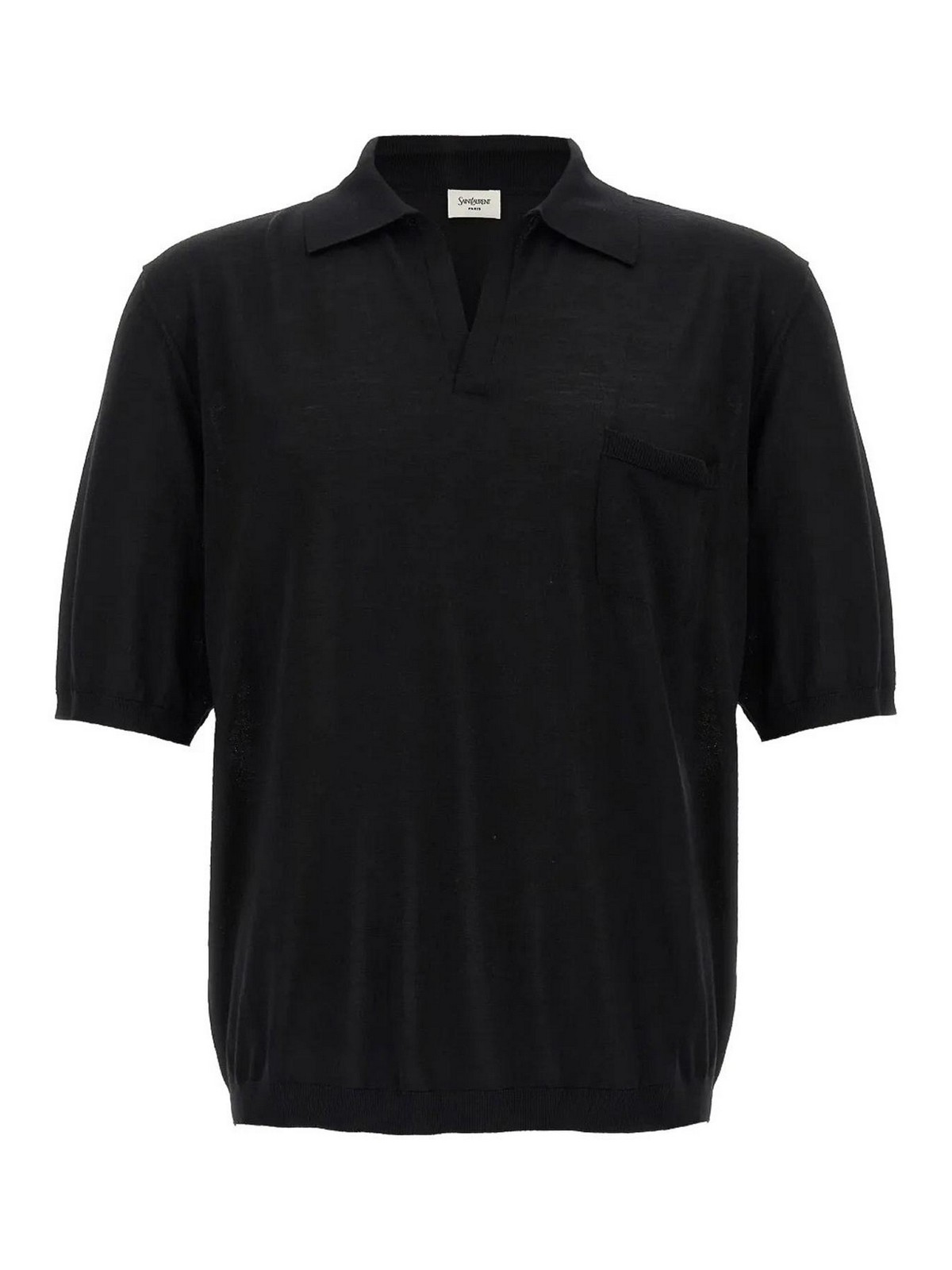 Designer knit finish polo collar split neck chest patch pocket short sleeves