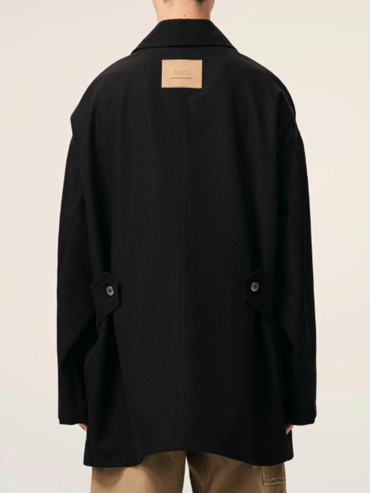 Designer oversized fit regular collar button back buttoned tabs patch pockets intern pocket with button tonal topstitches