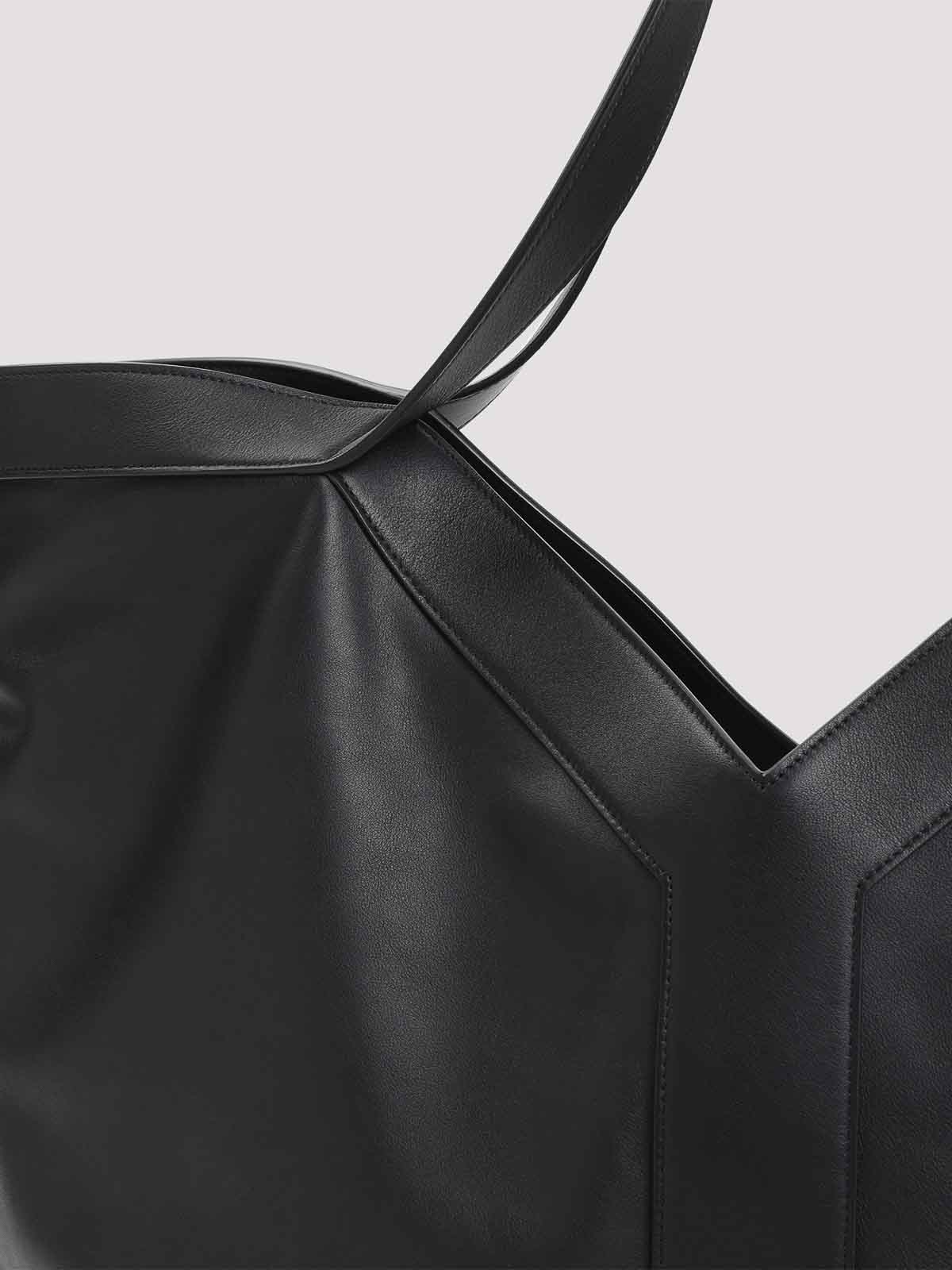 Saint laurent y large black leather shoulder bag. crafted from black leather, y-shaped top hem, leather handles, concealed hook fastening, inner zip pocket, lined.
