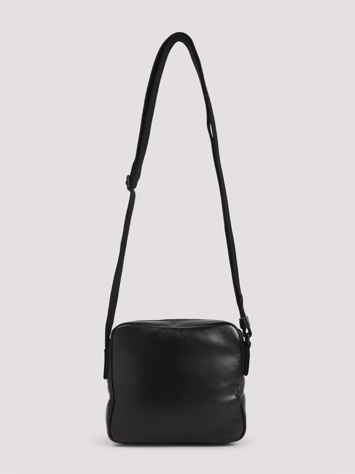 Saint laurent ysl cube black nappa leather shoulder bag. crafted from black nappa leather, black hardware, metal cassandre logo on the front, two compartments with zip fastening, embossed logo on the side, inner card slot, adjustable leather shoulder strap, lined.
