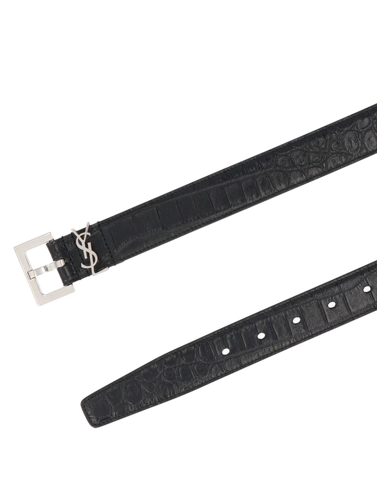 SAINT LAURENT: belts - YSL reptile print belt in black